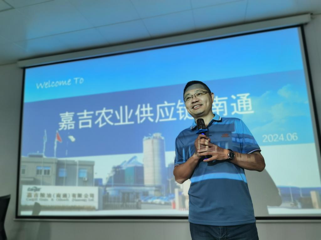 食品学院优秀校友,嘉吉农业供应链中国区生产运营总监卢灿明、南通工厂厂长兼总经理巴特等对来访师生表示热烈欢迎。他们简要介绍企业与工厂情况,并表达了对吸引更多江大学子加入嘉吉的热切期待。
