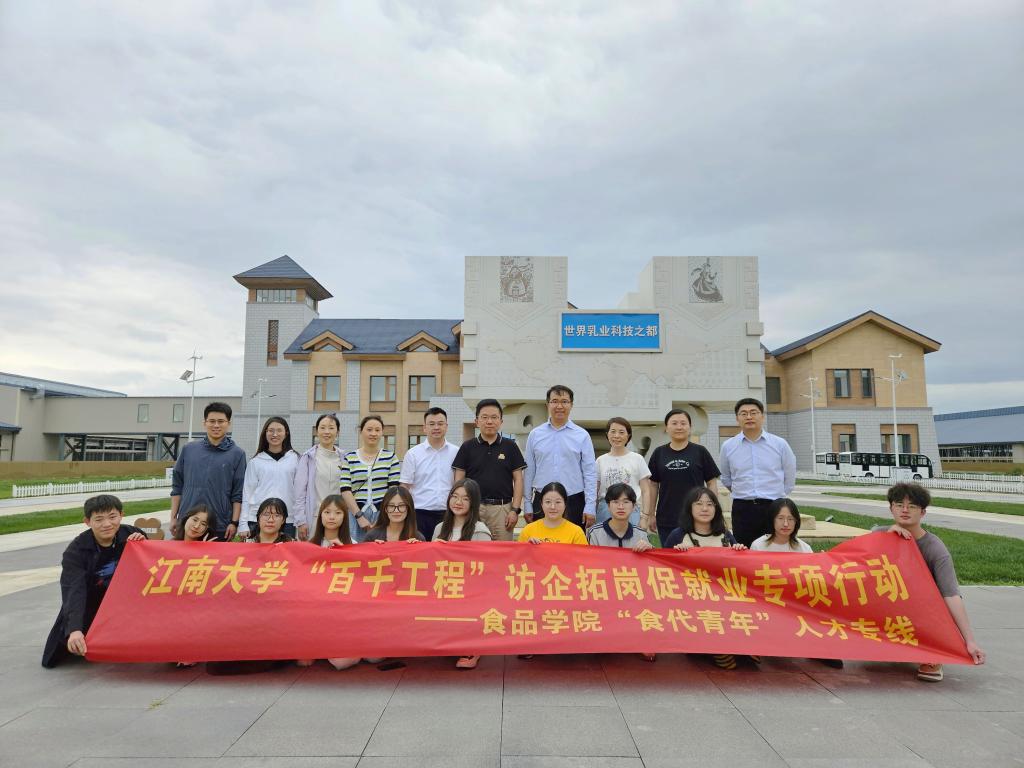 为进一步深化院企合作,主动引领广大青年学子走进企业、了解行业、热爱专业,切实促进当代大学生高质量充分就业,7月5-6日,食品学院党委副书记兼副院长李雷率队前往内蒙古呼和浩特市,在伊利集团开展江南大学“百千工程”访企拓岗促就业专项行动——“食代青年”人才专线活动。