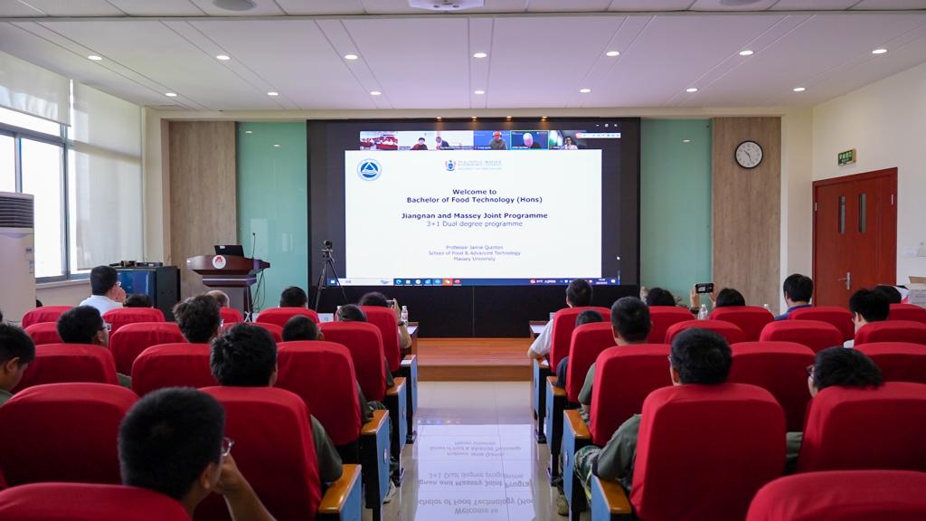 毓秀风华新起点,跨越山海再启航。9月9日,江南大学——梅西大学食品科学与工程专业本科中外合作办学项目2024级新生开学典礼在食品学院D912报告厅顺利举行。梅西大学理学院院长兼副校长Raymond Geor,食品及自然科学学院院长Jamie Quinton等在线参加典礼。江南大学党委常委、副校长堵国成,国际交流合作处处长倪晔,食品学院党委书记傅莉莉,副院长谢云飞、赵伟等领导与国际班59名新生现场出席典礼。典礼由食品学院党委副书记李雷主持。