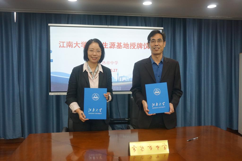 傅莉莉表示,很高兴能够来到常熟市中学这片充满活力的校园,共叙双高协同育人。近年来,常熟市中学考入江南大学的学生人数逐年攀升,这说明老师、同学们对江南大学办学实力愈加认可。她还从历史沿革、学科建设、人才培养、科学研究、社会服务、文化传承创新、国际交流合作等方面详细介绍我校食品学院的发展概况。双方签署优质生源基地协议,并进行授牌。