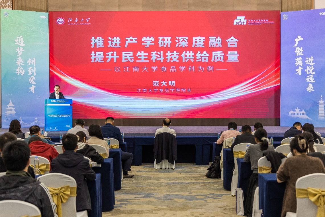江南大学范大明作题为《推进产学研深度融合,提升民生科技供给质量—以江南大学食品学科为例》的报告,江苏大学邹小波作题为《食品科学与工程学科工程化特色建设的思考与举措》的报告,南京财经大学唐培安作题为《多元协同、创新提质、赋能粮食行业新质发展》的报告,扬州大学杨振泉作题为《笃学求是、精技兴食、助力扬州美食产业高质量发展》的报告,南京工业大学胡永红作题为《面向新质生产力的食品学科建设与产学研协同》的报告,江苏科技大学鲁玉杰作题为《坚守“粮”心拓创新 “食”慧筑梦谋发展》的报告,盐城工学院余晓红作题为《面向地方食品产业的应用型人才培养创新与实践》的报告,江苏海洋大学盘赛昆作题为《“标准引领、科教双驱、产教联动”的食品科学与工程一流人才培养模式的探索与实践》的报告。各位报告专家畅所欲言,从多个角度探讨了食品学科建设和人才培养的特色举措。