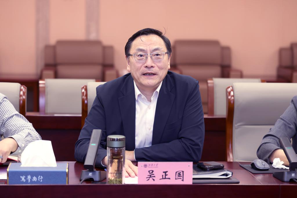 吴正国对中青班江苏调研团一行来访表示热烈欢迎,对国家教育行政学院、兄弟高校长期以来对我校的关心支持表示感谢。他指出,教育强国建设,高等教育是龙头,作为高校的领导干部,要争做排头兵,牢记初心使命,顽强拼搏进取,奋力跑好历史的接力棒。希望各高校一起锚定2035年建成教育强国的目标,携手投身教育强国建设,共同答好“教育强国、高教何为”的时代命题。
