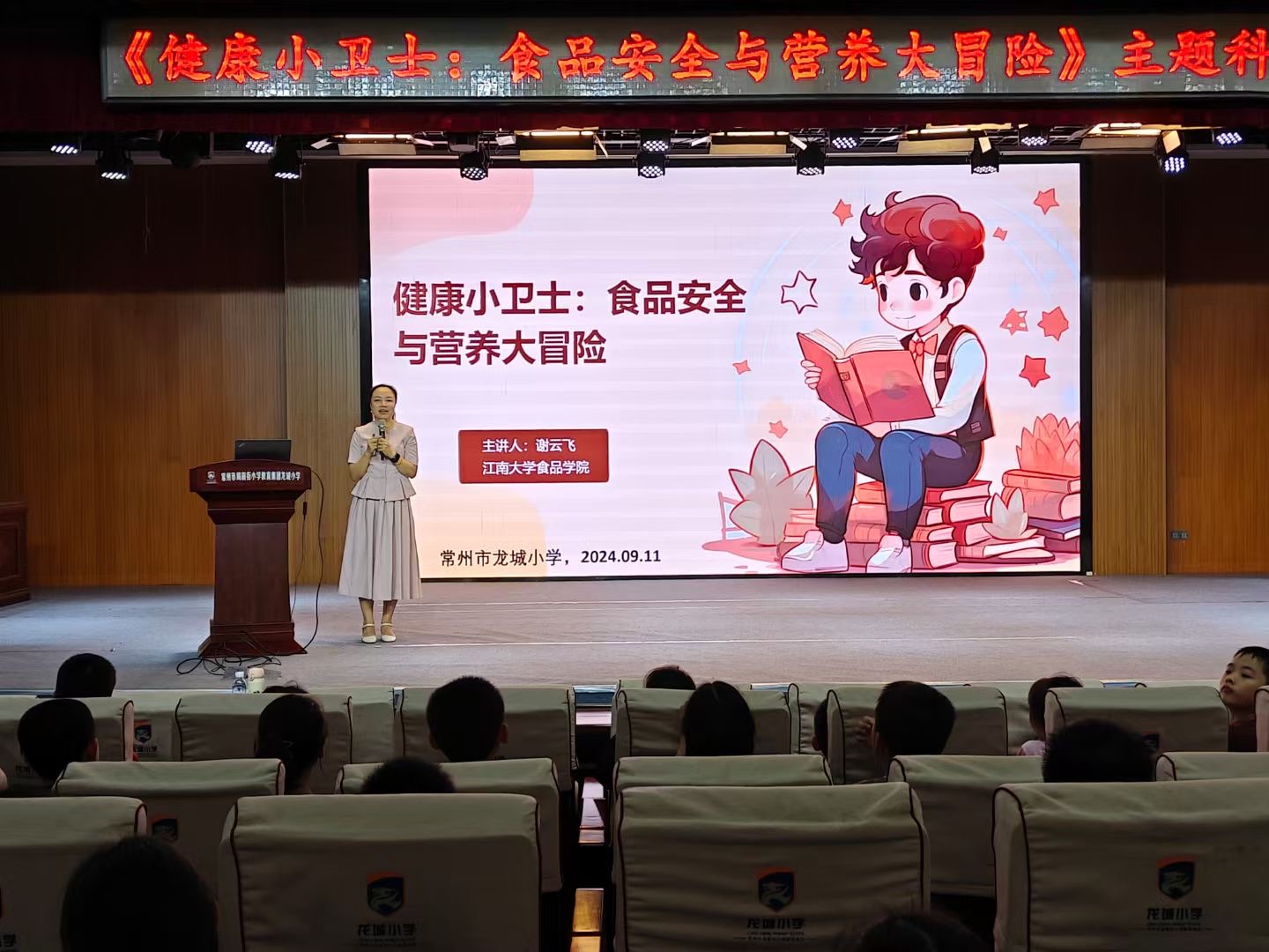 9月11日,食品学院教授谢云飞走进常州市龙城小学,以《健康小卫士:食品安全与营养大冒险》为主题,为小学生们带来一场生动的科普讲座。谢云飞以贴近生活的食品安全事件为切入点,生动有趣地强化学生们对食品安全的认识,为他们树立正确、健康的饮食观念。