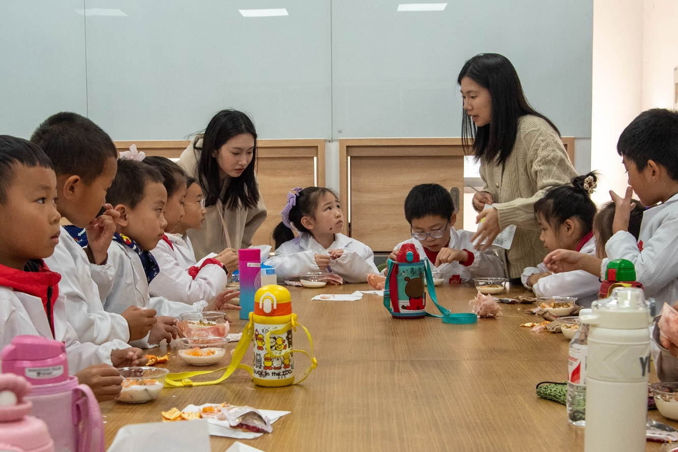 赋能“食”力量,助力快乐成长。美食制作完成后是“橘子瓣瓣、团结满满”的互动游戏环节,一片片欢声笑语为趣味活动画上圆满的句号。本次“关爱江小娃——‘食’趣科普实践工坊”活动以食育滋养为核心、以快乐成长为目标,旨在引领“江小娃”在食育实践中感受食品科学的魅力,促进其健康快乐成长。未来,食品学院将陆续推出形式多样的科普实践活动,为儿童食育“工”献“食”足力量!
