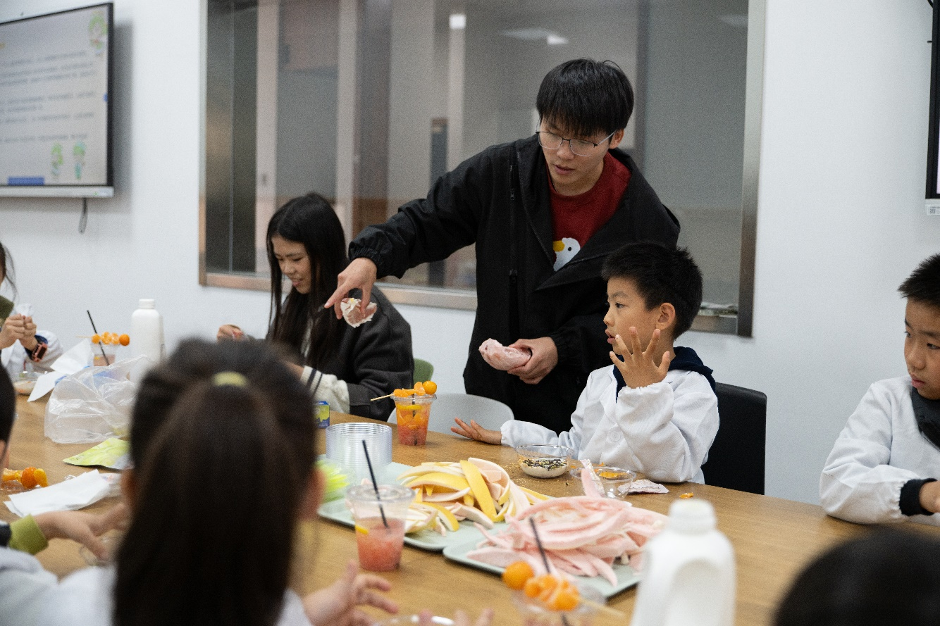 为帮助“江小娃”树立正确饮食观念,培养动手实践能力,食品学院分工会在校工会的支持下,与青芽食育大学生科普社团联合打造“关爱江小娃——‘食’趣科普实践工坊”系列活动,计划每月开展1期,一年12期。今年11月,首期活动“大柚作为——探秘柑橘类水果背后的故事”在我院食品工坊顺利举。青芽食育团队通过普及柚子及其所属柑橘类水果中的食品科学知识,指导小朋友制作柚子创意美食,为“江小娃”带来了一场兼具科学、创意与趣味的“食”趣盛宴。