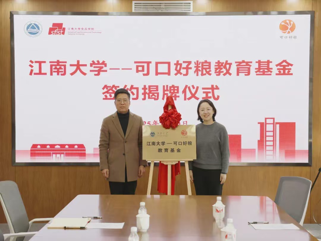 随后,校企双方代表签署捐赠协议并一同为“江南大学可口好粮教育基金”揭牌,开启育人合作、双向赋能、多维联动的新征程。