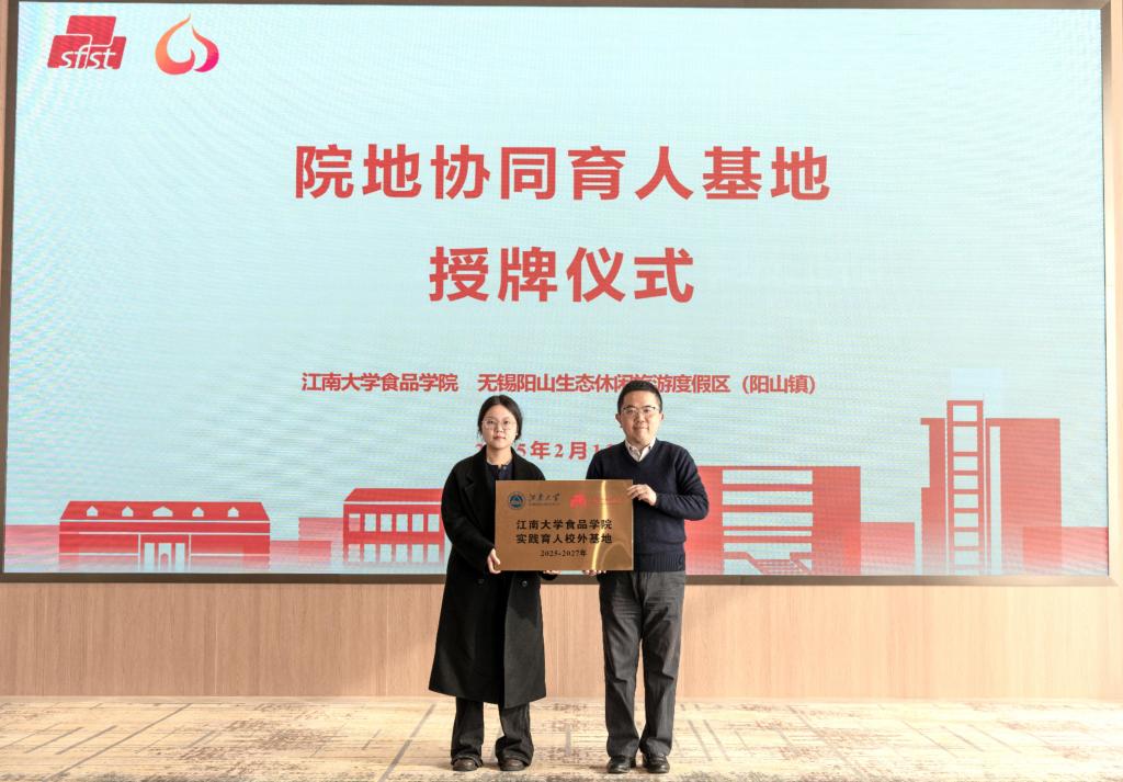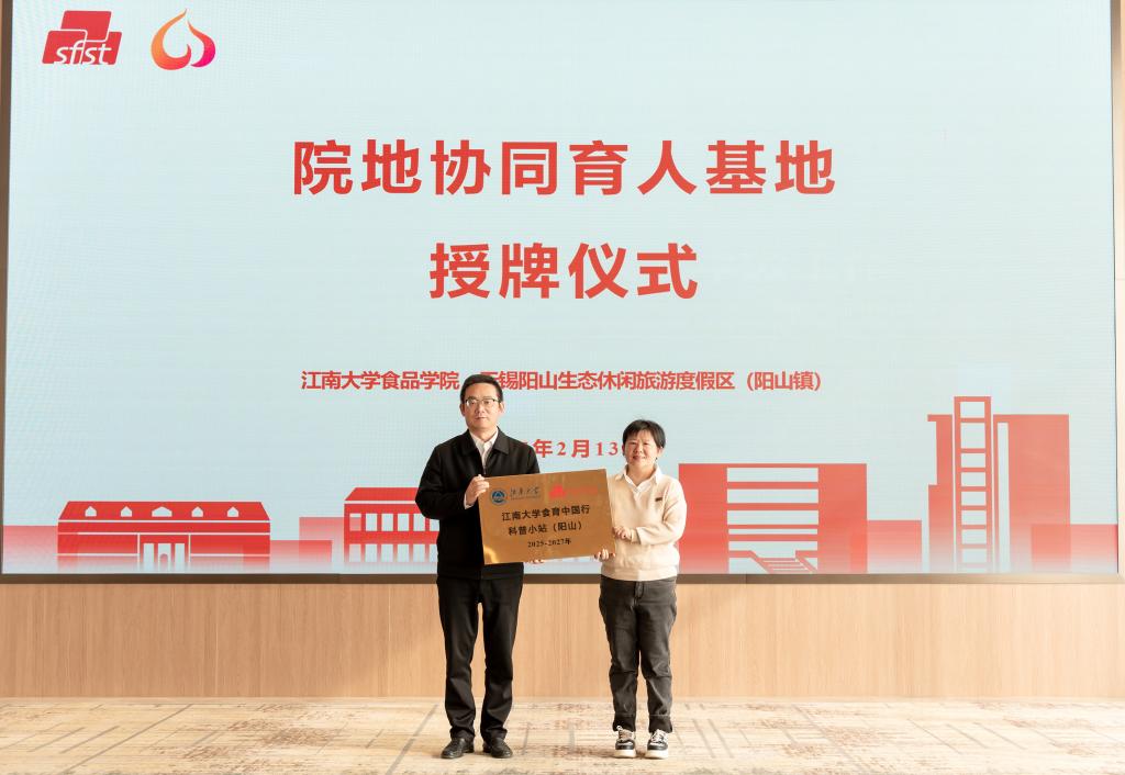 为进一步推动教育链、人才链、产业链、创新链有机融合,2月13日上午,Kaiyun官方网站登录入口与度假区(阳山镇)在无锡院士小镇举办院地共建活动。校党委学生工作部部长周伟涛,食品学院党委书记傅莉莉、院长孙秀兰、党委副书记兼副院长李雷、副院长商飞飞及全体辅导员和部分教师代表;阳山旅游度假区党工委书记、管理办公室主任、镇党委书记许彤亮,副镇长周澎菲,镇党委组织委员姚榕及相关部门负责人出席活动。仪式由周澎菲主持。