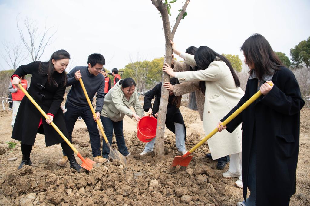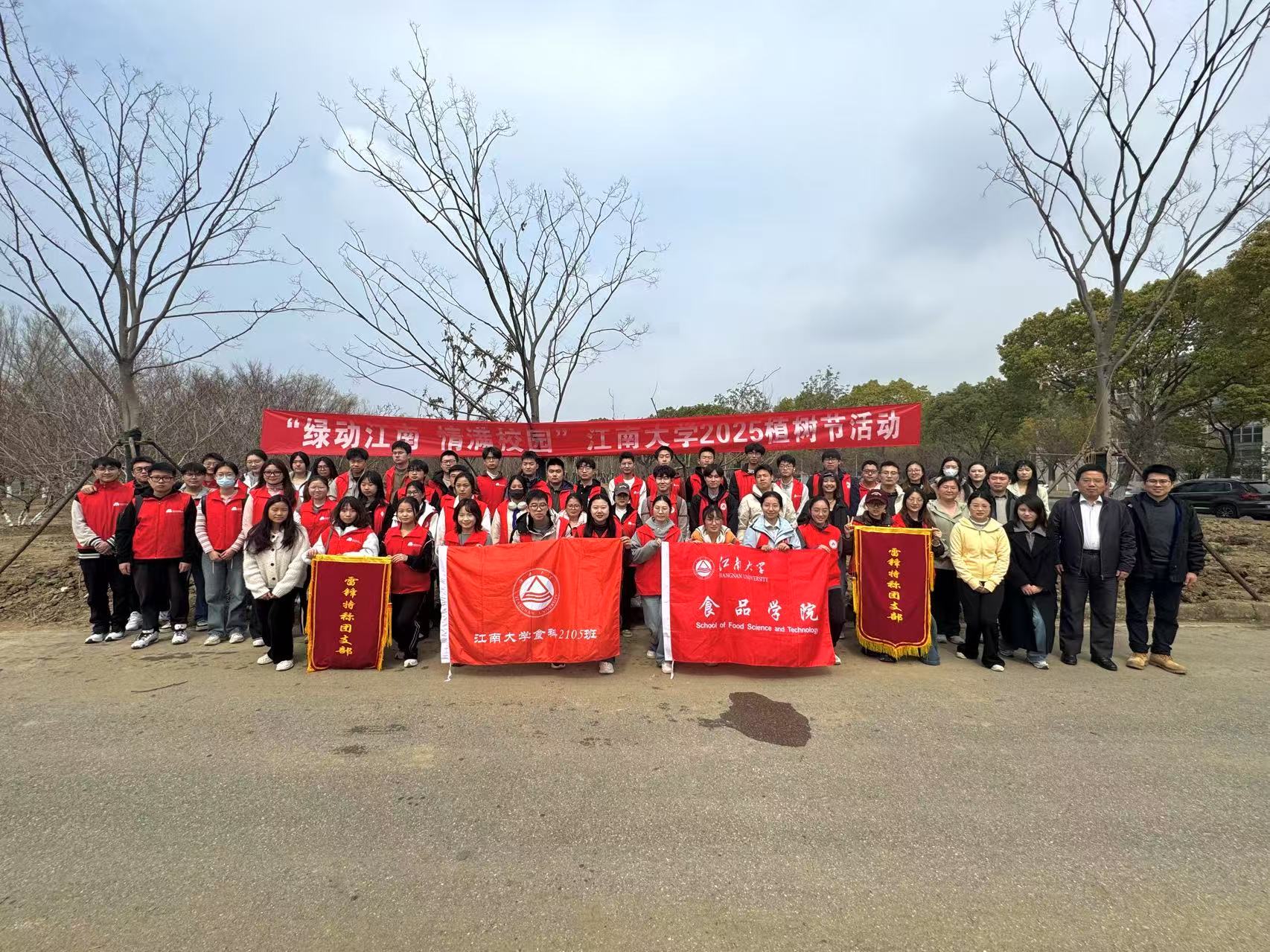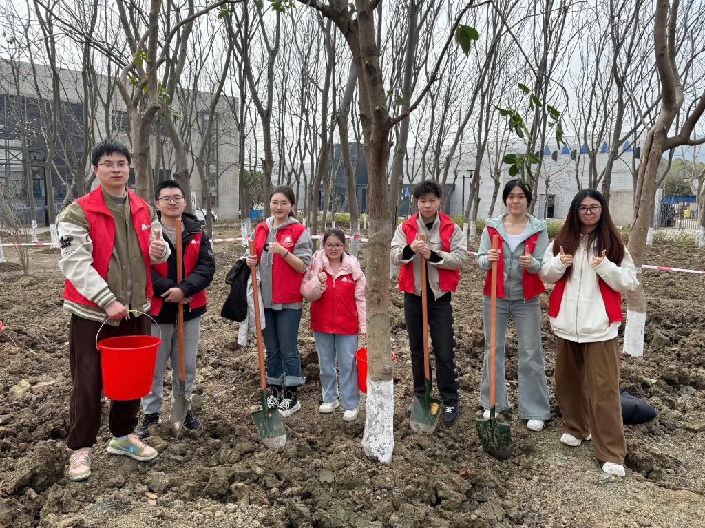 律回春晖渐,万象始更新;便觉生意满,添绿正当时。在全国第47个植树节来临之际,为深入践行生态文明思想,助力学校“绿色校园”建设,营造“以树育人、以景润心”校园文化氛围,3月10日,食品学院与后勤管理处环境中心、环境与生态学院携手举办“绿动江南 情满校园”2025植树节活动。食品学院本科生第一党支部、食科2105和食科2202“雷锋”特称团支部、营养2302和食品AI 卓越创新班的青年学子参与活动。
