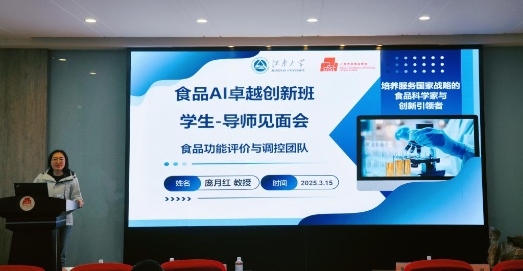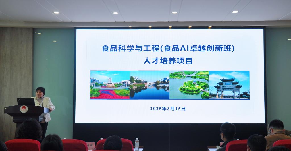 讲座伊始,孙秀兰详细介绍食品AI卓越创新班人才培养项目。她指出,创新班旨在培养具有“中国灵魂、全球视野、江南特质”的食品科学家与创新引领者,以应对全球食品科技产业革命的挑战与机遇。她强调,该班采用本硕博贯通培养模式,通过顶尖导师团队的全过程介入式培养,强化学生科研训练。此外,该班构建以食品科学与工程为主体,人工智能为辅助的多学科融合课程体系,涵盖化学、生物学、医学等领域。未来,学院将通过项目式学习、假期讲座和人文伦理教育等方式,进一步提升创新班学生的跨学科能力和综合素质。