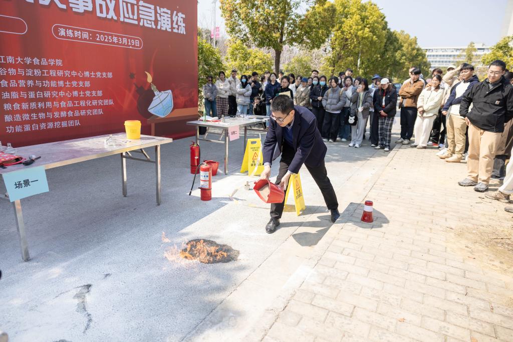 近日,食品学院举办“实验室酒精灯火灾事故”应急演练。副院长程力,实验室主任王文龙,粮食新质利用与食品工程化研究团队、酿造微生物与发酵食品研究团队、功能蛋白资源挖掘团队实验室安全负责人及相关学生共同参与演练活动,2024级硕士研究生全体观摩。本次活动由谷物与淀粉博士党支部、食品营养与功能博士党支部及油脂与蛋白博士党支部共同组织,学校保卫处、食品科学与资源挖掘全国重点实验室提供技术及场地支持,应急演练由青岛海尔生物医疗股份有限公司安全培训师李公海主持。