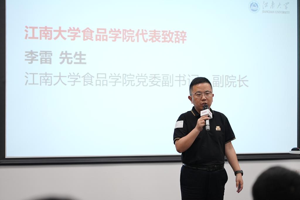 李雷介绍食品学院创新育人理念,强调校园创新大赛已成为校企协同育人的重要桥梁,依托企业提供的多元化实践场域,助力食品学子把握食品工业智能化转型趋势,全面提升创新素养。