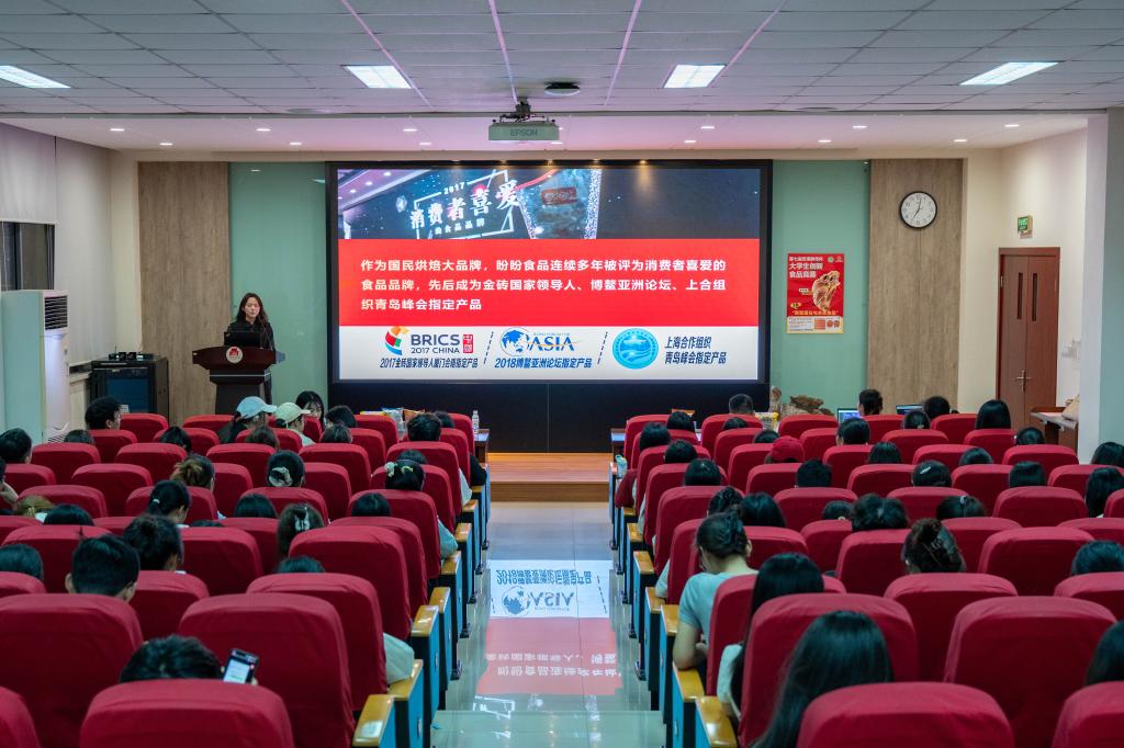 罗良静、卢发分别介绍各自企业概况、文化理念及相关产品,围绕竞赛的创意要求、参与方式、命题解析等方面进行细致讲解,并为同学们普及各类产品的工业化生产相关知识。问答环节中,同学们与嘉宾积极互动,充分展现了食品学子的热情与素养。企业为同学们准备的零食奖品则将现场氛围推向又一个高潮。