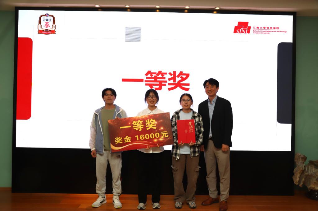 经过选手激烈角逐和评委严格评审,最终,来自江南大学的《参脉》荣获一等奖;来自石河子大学的《“马面裙”系列红参葡萄酒》和来自西南大学的《红参蓝靛果汁饮品》荣获二等奖;来自江南大学的《“参”呼吸-红参坚果气泡黑巧克力》、山西师范大学的《酵醒元气红参饮》、新疆农业大学的《红参臻果糕》、安徽师范大学的《香猪觅纸—风味红参猪肉纸》以及浙江工业大学的《元气红参枸杞燕麦脆》荣获三等奖;另有多项作品获优秀作品奖。与会领导嘉宾为获奖团队颁发荣誉证书,现场掌声雷动、气氛热烈。