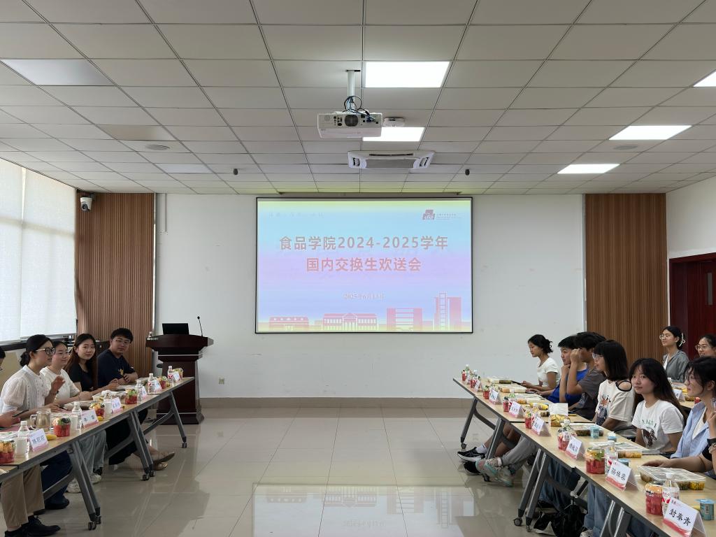 6月13日,食品学院2024-2025学年国内交换生欢送会在D916会议室举办。党委副书记兼副院长李雷、2022级本科生辅导员张任、2023级本科生辅导员崔家玮及来自茅台学院、山西师范大学、石河子大学、新疆农业大学、台湾实践大学的29名交换生参加活动。座谈会由崔家玮主持。