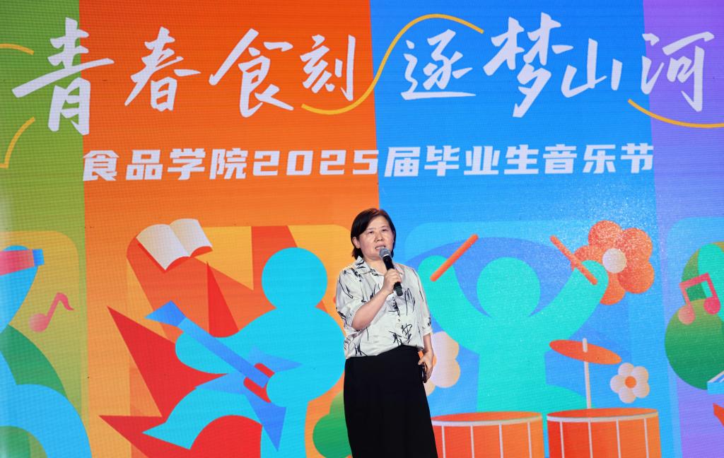 孙秀兰代表食品学院党政向全体2025届毕业生致以诚挚祝福,对所有演职人员表示衷心感谢。她寄语毕业生心怀梦想奔赴璀璨未来,始终以“江南食品人,敢为天下先”的精神指引人生。