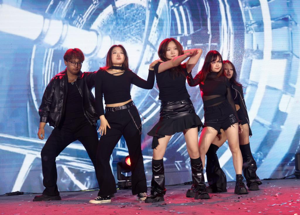 音乐节在无序离场乐队充满张力的《Summertime》表演中热力启幕。跃动的鼓点敲开夏夜序曲,台上台下在节奏共振中点燃了仲夏夜的狂欢引擎。第一篇章“初绽·梦启青葱”在《Lovesick Girls》热烈的舞步中开场。《月牙湾》歌声婉转,萨克斯旋律悠扬,将青春的蓬勃朝气尽情释放。《雪白透亮》以扣人心弦的旋律,将观众带入音乐秘境。食品学院党政团队带来的《童年放映机》瞬间嗨翻全场,而歌舞串烧《青春限定配方》更将舞台化作充满无限可能的青春宇宙,让所有人沉浸其中。