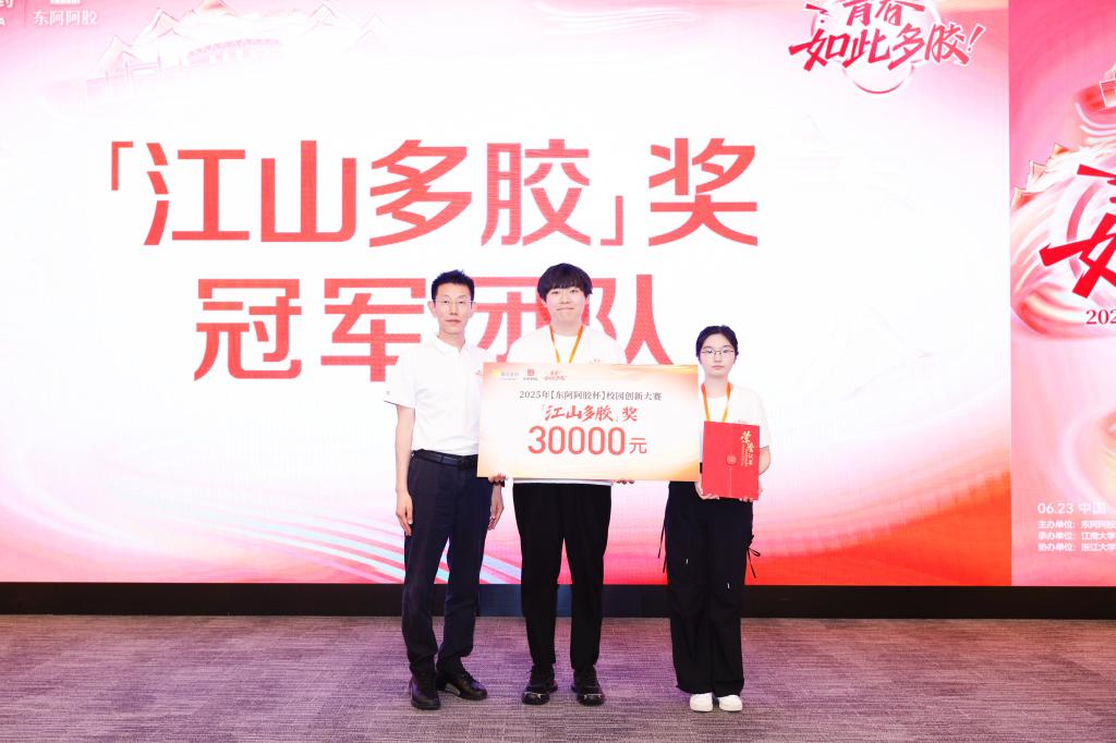 6月23日,由东阿阿胶主办、江南大学承办、五所高校协办的“青春如此多胶·2025‘东阿阿胶杯’校园创新大赛”总决赛在东阿阿胶访客中心举办。来自江南大学、浙江大学、中国海洋大学、华南农业大学、四川农业大学、贺州学院等共计15支团队50余名师生,与东阿阿胶领导、行业专家齐聚一堂,共同参与了这场以“青春如此多胶”为主题的新品设计创意大赛盛宴。