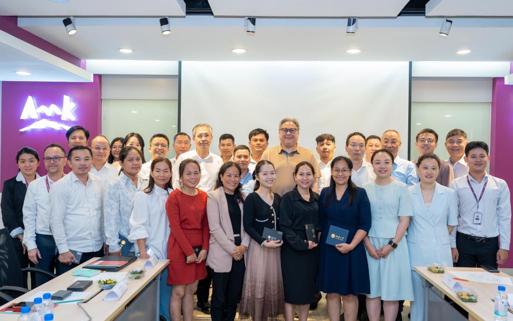 研讨会上,堵国成教授、荣康信董事长分别致辞,回顾此次活动的背景以及江南大学与AMK的合作基础,期待通过双方的共同努力与务实推动,促进中柬农业与食品产业高质量发展,推动“鱼米走廊”国际项目走深走实。我校食品学院副院长谢云飞作《中柬食品加工技术交流与合作新机遇》主旨报告,重点围绕江南大学及食品学院基本情况、鱼米走廊合作背景、鱼米资源加工技术研究案例、鱼米资源开发利用等内容向参会人员做介绍,并就江南大学与柬埔寨食品加工企业及高等院校积极开展校企合作、校际合作、共建江南大学技术转移中心金边分中心等提供可行方案。在互动环节,与会人员围绕鱼露酿造提质、大豆饮品货架期延长、坚果原料保藏与优质烘焙、低GI复合米粉制品品质优化、食品安全质检以及自动化生产线建设(发酵、灌装、杀菌等生产单元)等内容深入交流,并就中柬高校之间的国际交流、人才联培、平台建设等进行探讨。
