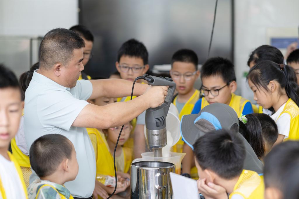 在科普讲座环节,陈博知通过互动教学方式,深入浅出地讲解了意式手工冰淇淋的制作工艺要点。现场观众积极参与问答。在食品工坊,40名小学生在王玉婷的指导下现场体验冰淇淋制作魅力。