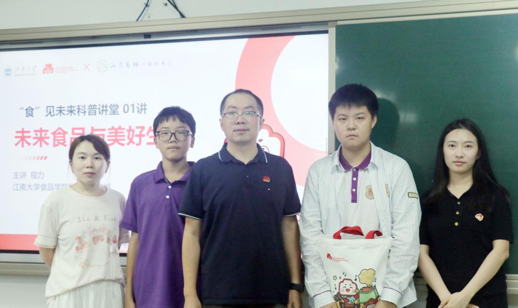 为普及前沿食品学科知识,培育一批热爱科学、崇尚创新的食品新青年,在学校的指导与支持下,食品学院与江苏省锡山高级中学充分利用双方资源与平台优势,联合打造为期一年的食品科普课程——“食”见未来科普课堂。全国首个科普月期间,“食”见未来科普课堂第一讲《未来食品与美好生活》在省锡中正式开讲。