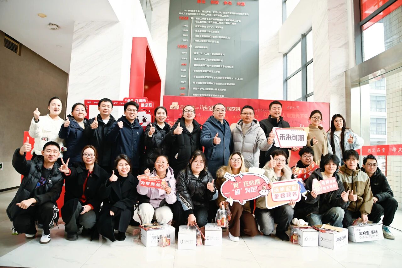 12月5日中午,食品学院一楼大厅洋溢着融融暖意。学院党委副书记、副院长陈勇,副院长、食科2202班班主任程力,副院长柏玉香及全体辅导员一同为“研”途路上认真备考的学子们送上暖心补给和真挚祝福。“最后阶段,既要全力以赴,也要保重身体”“把握节奏,一定上岸!”一句句朴实的叮咛、一声声真诚的鼓励,如冬日里的暖阳,驱散备考的疲惫,坚定了学子们冲刺的决心,跑赢考研这场“马拉松”。