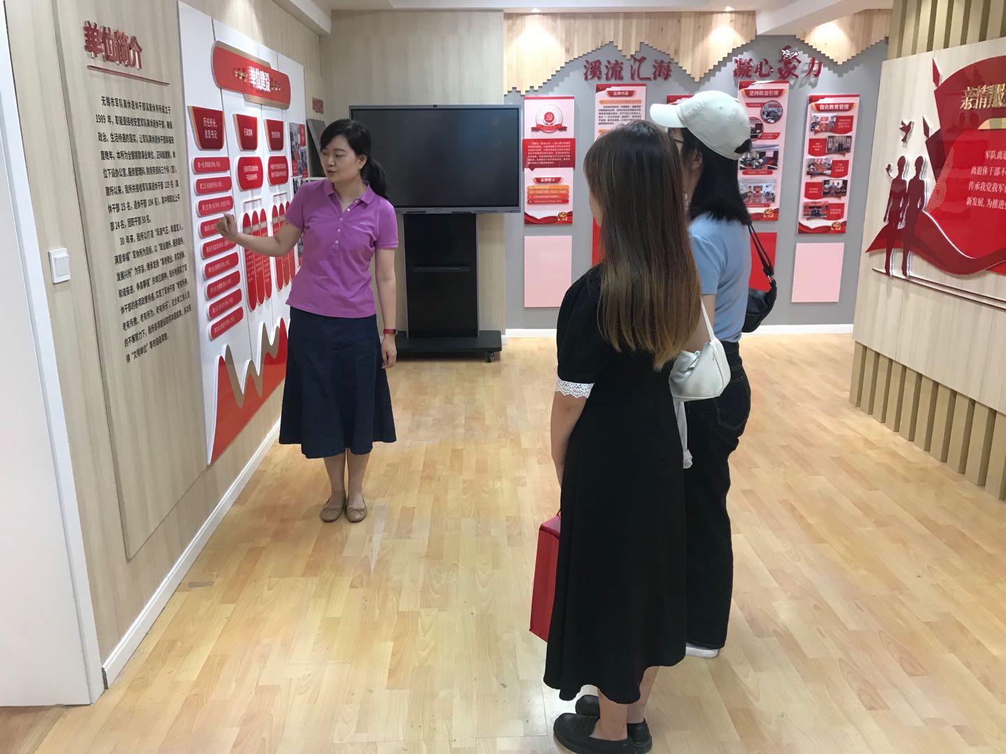 溪南军休所副所长、关工委副主任陈鸣辉讲解荣誉室老干部事迹