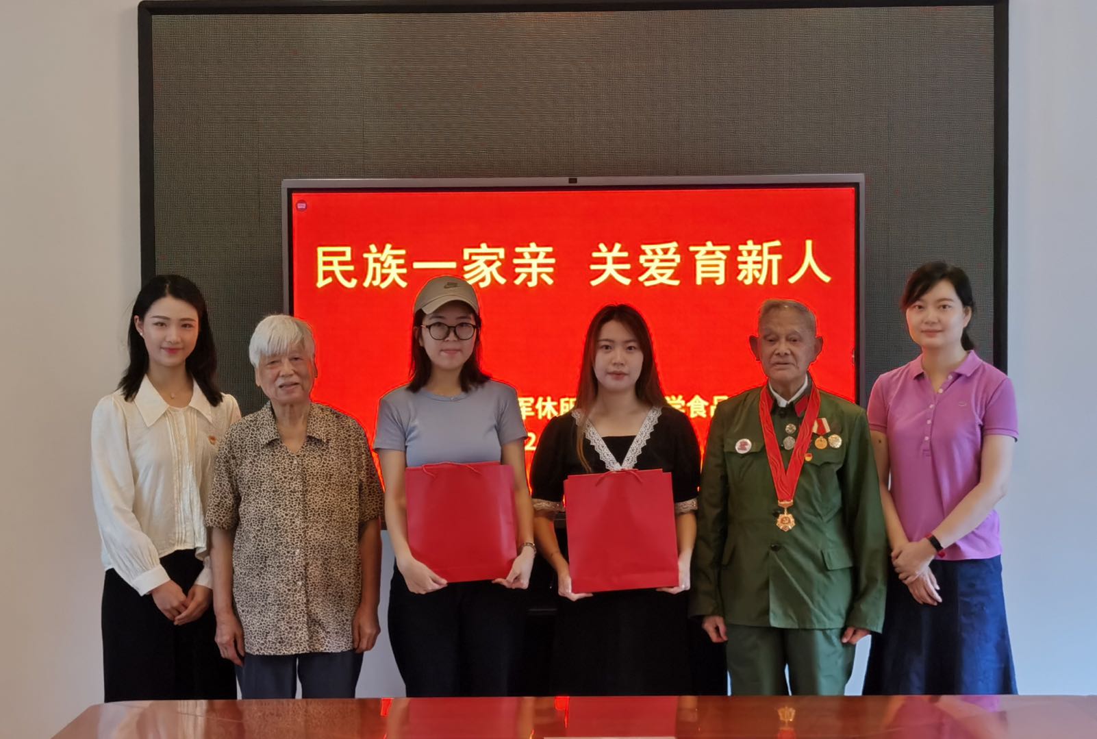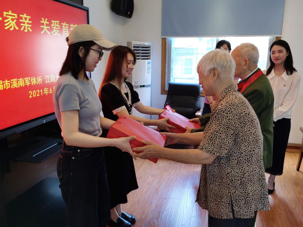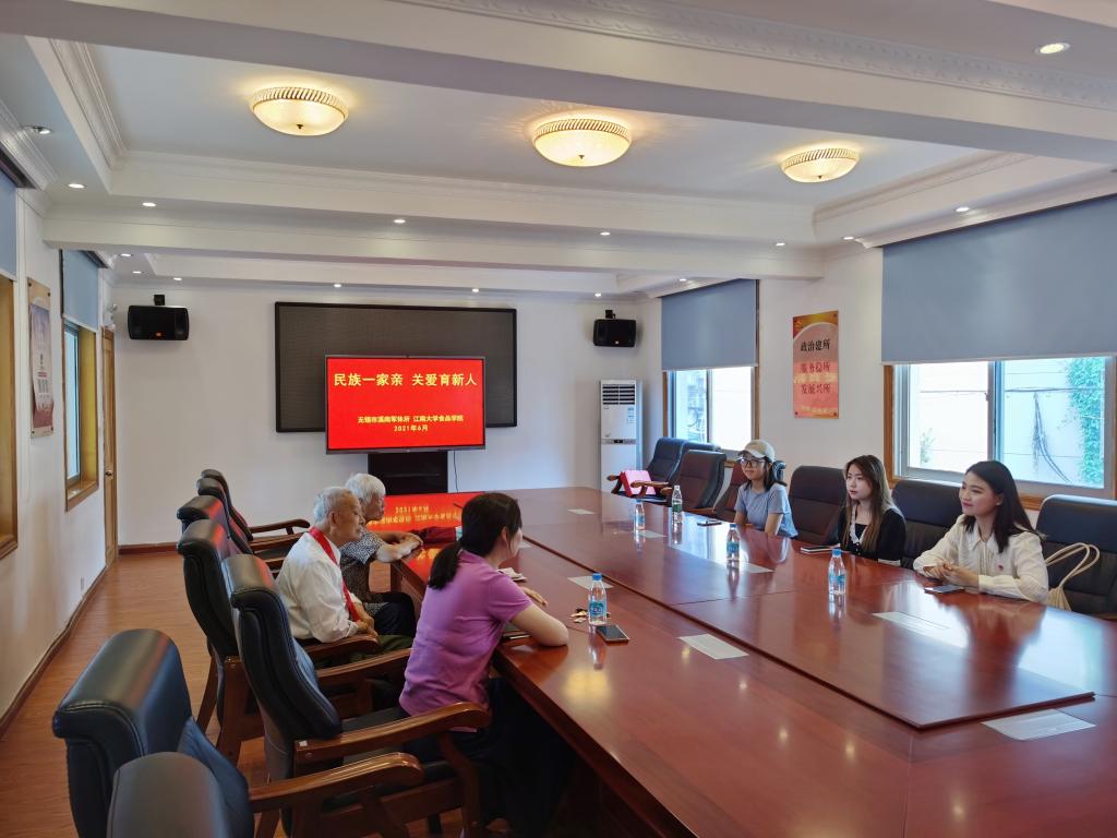 6月27日上午,食品学院前往无锡市溪南军休所开展“民族一家亲,关爱育新人”慰问活动。无锡市“光荣在党50年”离退休干部优秀共产党员董振泰、华福娟,溪南军休所副所长、关工委副主任陈鸣辉,溪南军休所办公室主任林世琳,食品学院辅导员胡晓丹,2018级少数民族本科生宋阳、索妮尔参加了活动。