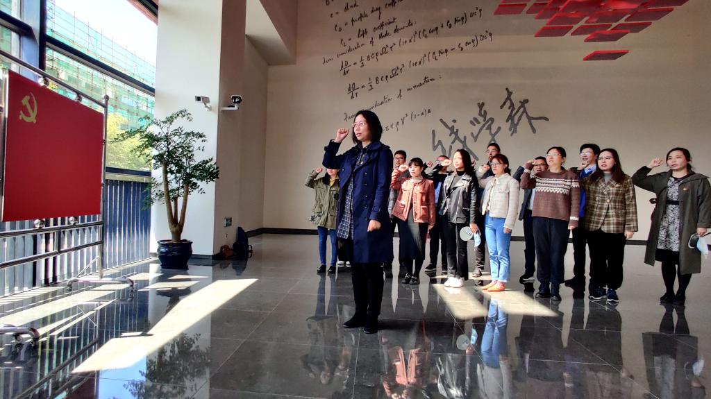 实践学习第一站来到钱学森图书馆。这是一座科学家纪念馆,馆内大量历史照片、文献资料和钱学森同志私人物品生动再现了钱学森同志对中国航天事业和现代科学技术的贡献。“五年归国路,十年两弹成”,他引领中国航天人走出了一条独立自主的技术创新、发展之路。一行人领略大师风范,感悟家国情怀,通过以人见史的方式探究人民科学家钱学森追求真理的科学精神,感受作为一名优秀共产党员对党和人民无限忠诚的炽热情怀和矢志不渝的初心信仰,傅莉莉在现场还带领党支部书记重温入党誓词。