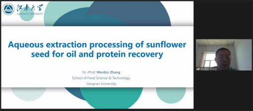 本次专题研讨会为江南大学-新西兰梅西大学食品科学与技术方向首次双边线上学术交流活动。本次研讨会围绕食品科学与技术多个研究方向展开,梅西大学食品与先进技术学院Richard Archer教授首先作题为“Rapid Continuous Freezing of Liquid Foods”的学术报告,随后Lovedeep Kaur高级研究员和Zhi Yang讲师分别作题为“Understanding the relationship between meat structure, processing and digestion”和“Probing the microstructures of food biopolymers using advanced scattering methods”的学术报告。接下来,Kaiyun官方网站登录入口张文斌教授、郑召君副研究员、杨巍副教授分别以“Aqueous extraction processing of sunflower seed for oil and protein recovery”,“Osteogenic effects of Calcium-binding peptides”和“Enzymatic Acylation of Anthocyanin from Berries”为主题进行学术报告,介绍了各自的研究成果。报告引起了与会师生的浓厚兴趣,双方就相关研究细节和应用展开了积极讨论与互动。