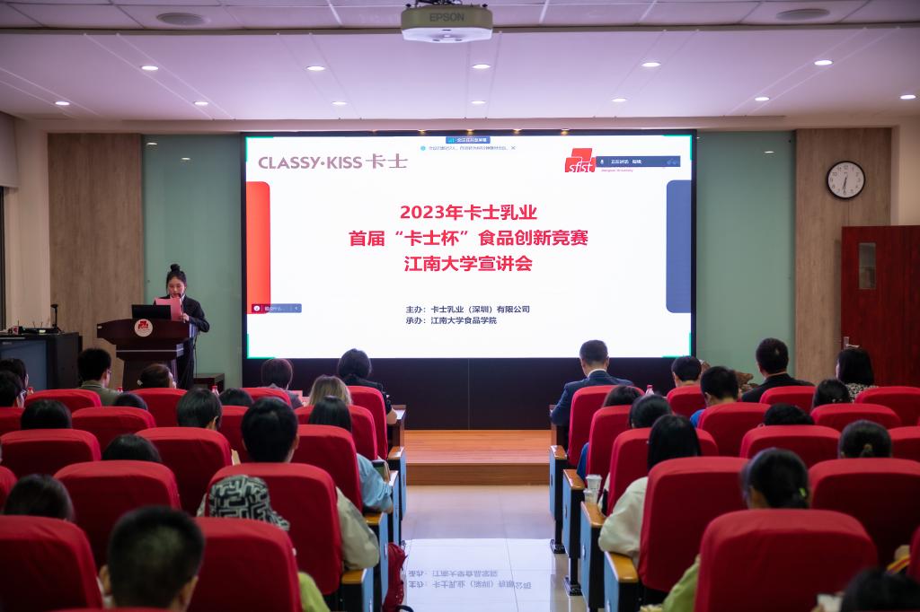为深入贯彻落实健康中国2030规划纲要,助力现代乳制品产业加速向高品质、高附加值和可持续发展方向转型,同时有效提升食品专业青年学子的创新实践能力,10月19日,由卡士乳业(深圳)有限公司与Kaiyun官方网站登录入口联合举办的首届“卡士杯”食品创新竞赛在我校正式启动。卡士乳业人力总监张会民、技术中心研发负责人俞兰秀、人力招聘专家苏显佳、人才开发负责人胡梦婷,食品学院党委书记傅莉莉、教授卢蓉蓉、副教授李晓瑄、学工办主任兼分团委书记李金杰及300余名在校生参加宣讲会。