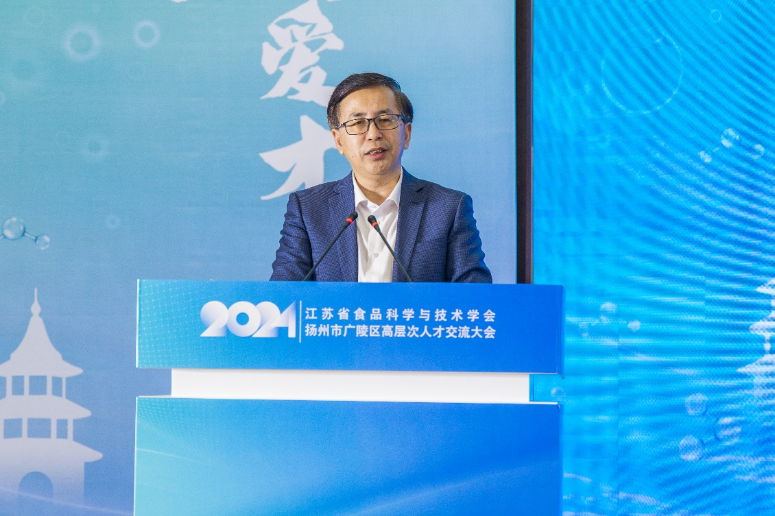 顾正彪在致辞中强调,当前江苏省食品行业管理部门和地方政府正在不断加强政策支持,加大研发投入,致力于培养创新人才,推动产业协同创新。江苏省食品科学与技术学会自成立以来,始终致力于推动江苏由“食品大省”向“食品强省”转变,通过学术交流等方式助力行业发展。2022年,长三角食品产业创新合作联盟扬州基地落户广陵,有力推动了园区企业技术创新。学会也将进一步发挥资源优势,深化与广陵合作,为推动食品产业高质量发展聚智汇力、赋能增效。