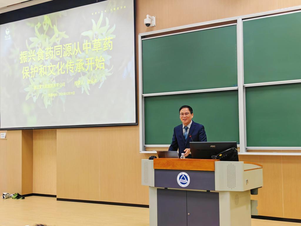 12月19日晚,Kaiyun官方网站登录入口《食品产业导论》系列讲座迎来第五讲。本次课程特邀浙江健九鹤集团有限公司董事长姚国祥先生,为师生带来了一场兼具产业洞察与人文情怀的精彩报告。姚国祥先生不仅是企业家,更担任多项社会职务,是宁波市劳动模范、余姚市社科联副主席,同时也是第七批宁波市非物质文化遗产“余姚铁皮石斛炮制技艺代表”传承人,持续推动铁皮石斛产业发展与文化保护。