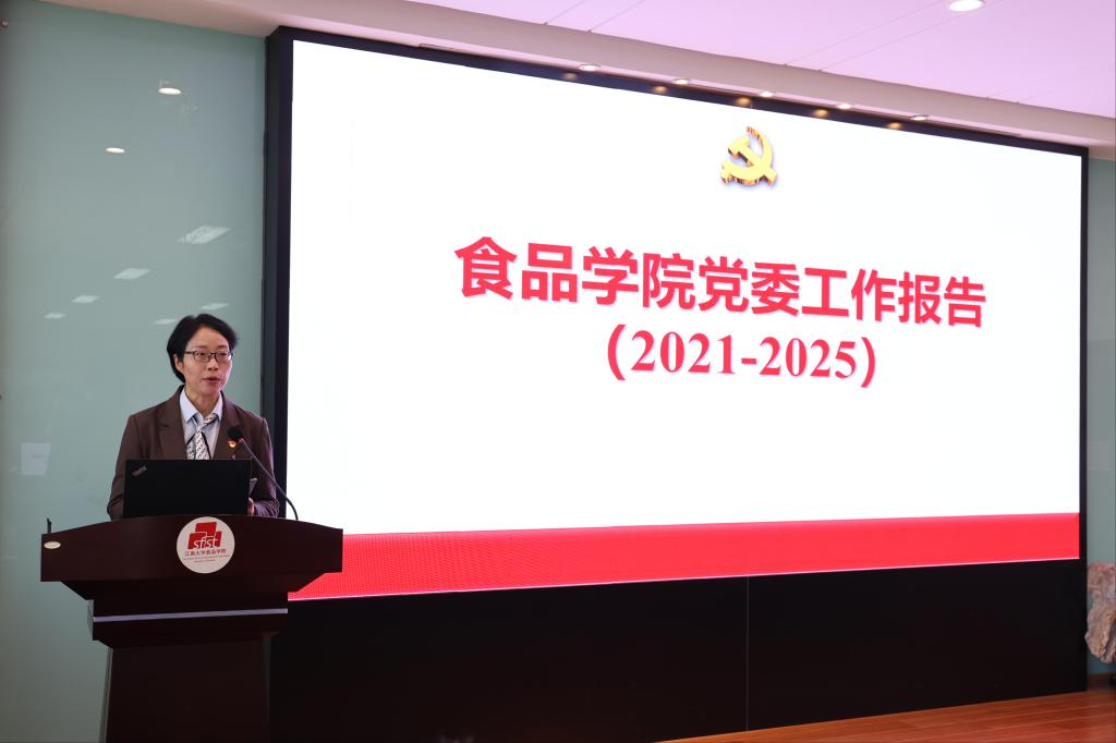 本次大会共有两项主要议程,一是报告食品学院党委上一届任期工作,二是选举产生食品学院党委新一届委员会。首先,学院党委书记傅莉莉同志做了题为《落实立德树人 胸怀“国之大者” 奋力谱写世界一流食品学科建设新篇章》的工作报告。报告回顾了2021-2025年食品学院党委的工作情况,指出食品学院党委在习近平新时代中国特色社会主义思想的指引下,在学校党委的坚强领导下,紧紧围绕立德树人根本任务和“世界一流学科”建设目标,坚定有力发挥政治核心作用,旗帜鲜明做好思想政治工作,从严从实筑牢党建基层基础,团结带领全院党员、师生踔厉奋发、勇毅前行,各项工作取得全面发展。报告明确了今后工作的目标和主要任务,未来将继续加强领导班子建设,夯实基层党建工作,凝练学科文化共识,促进事业高质量发展。